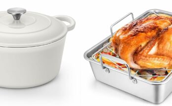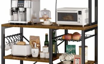 View on Amazon The VASAGLE Golden Oak Kitchen Rack is a helpful piece for any kitchen. It works well as a baker’s rack and a microwave stand. You can store …