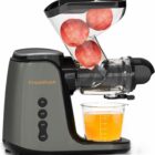 The Canoly Cold Press Juicer is a black and gray machine designed to make juice from whole fruits and vegetables. It has a wide opening (5.4 inches) so you don’t need to cut up your produce as much. A strong 350-watt motor powers a slow squeezing process, which helps get a lot of juice and keeps more of the good stuff from the fruits and veggies. It’s also made to be easy to take apart and clean after you’re done making your healthy drinks.