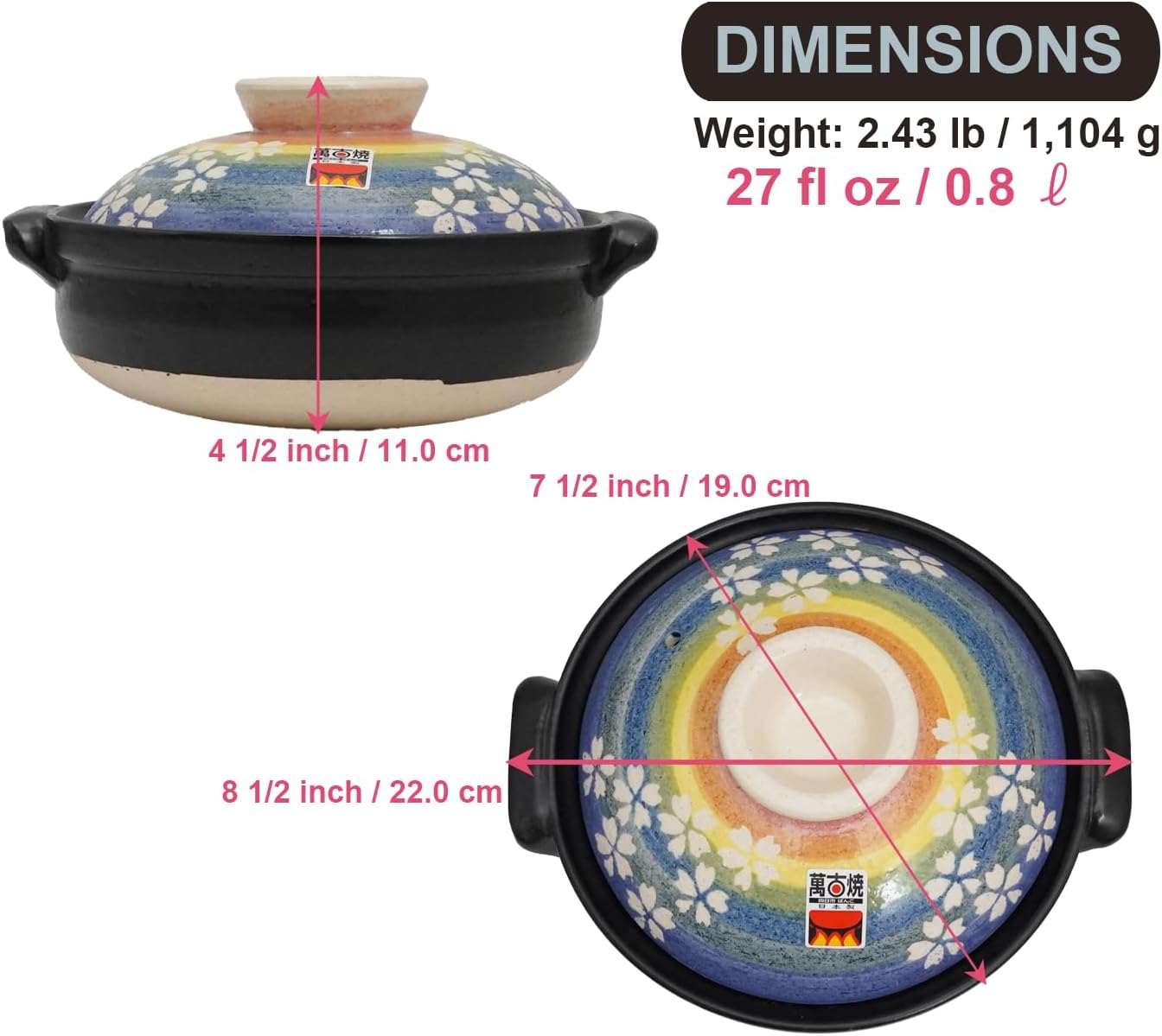 This COTONOHA Banko Ware Hanayagi is a Japanese-made clay pot for 1-2 people. It has a pretty cherry blossom design and rainbow colors. This “donabe” pot is versatile because you can use it in the oven and microwave. It’s a “cray pot” that’s oven and microwave safe.