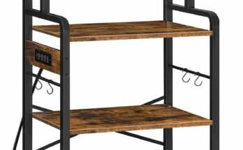 This DOLALIKE microwave rack is made of strong metal and can change in size to fit your counter and microwave. It helps you keep your kitchen tidy by holding your microwave and other things, and it comes with three hooks for hanging stuff. It’s easy to put together and looks modern. However, some people found it not as strong as they thought and noticed some problems with how it was made. You should also check how tall it will be to make sure it fits your space. Read more…