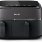 The Floisdace 10-QT Dual Large Air Fryer is a kitchen appliance with two baskets, letting you cook up to four different foods at the same time. It has 10 different ways to cook, like air frying, broiling, and baking, which can help you make meals faster. It has a “Smart Finish” to make sure different foods are done at the same time and a “Match Cook” button to cook the same way in both baskets. It’s big enough for families and has a simple design that’s easy to use and clean, even in the dishwasher. You can cook healthier meals with less oil using this air fryer. However, it is quite tall and takes up a lot of space on the counter, and some people have had issues with parts breaking. Read more…