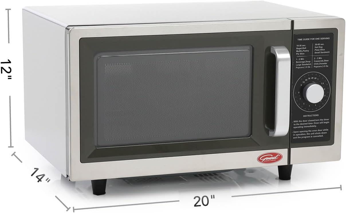 Furthermore, this General Commercial Countertop MW runs on 120 Volt power. It gives you 1000 watts of cooking power. Therefore, it can heat food quickly. The inside space is about 1 cubic foot. Also, the outside is made of stainless steel. This makes it look good and easy to clean. For example, reheating leftovers is a breeze.