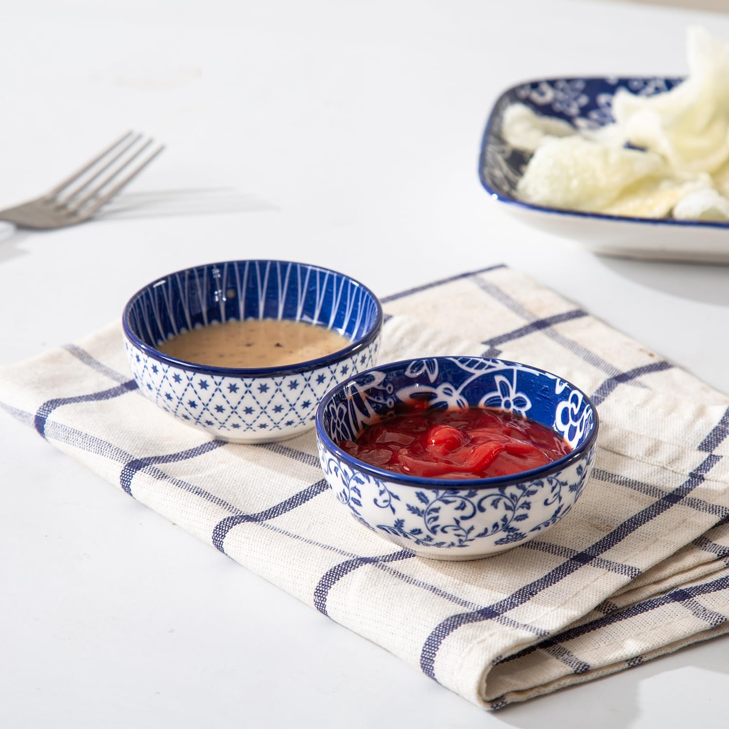 This set of six Gibsimi ceramic dipping bowls, in a vintage blue color, are great for holding small amounts of sauces, snacks, or appetizers like soy sauce, sushi, or items for a charcuterie board. Customers describe them as a quality and sturdy product that is both beautiful and cute with a nice glossy, modern look. They are also said to be easy to maintain and are dishwasher safe, making them convenient and versatile for everyday use. The unique designs and excellent packaging are also highlighted. Read more…