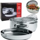 The Granite Ware 19 inch Oval Roaster Set offers ample space and includes useful accessories for baking, like brining bags and a thermometer, promising tender results and handling large turkeys. Many find it sturdy, easy to clean, and good quality, capable of withstanding high temperatures. However, a recurring issue is the poorly fitting lid, with reports of it not sitting properly, falling off, or having a different shape than expected, leading some to consider it not worth the price and difficult to move due to the lack of a tight seal. Read more…