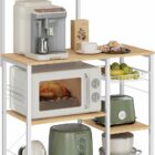 This HOOBRO bakers rack has a rustic brown and black look and gives you 5 shelves for storage in your kitchen. It also has 4 power outlets, a wire basket, a spot for paper towels, and a drawer. You can use it as a microwave stand or a coffee bar. It needs to be put together, and the drawer is best for light things. It might look a bit busy to some people and might not be the best for very big families or if you like a very simple style. Read more…