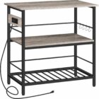 This HOOBRO bakers rack is tall, about 68 inches high, and has seven shelves for lots of storage in your kitchen or living room. It’s made of rustic brown material and can hold your microwave. It also has a power outlet so you can plug in your kitchen gadgets easily. Plus, it comes with four S-shaped hooks to hang things. You can even use it as a coffee bar!