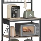 Moreover, this HOOBRO Tall Kitchen Shelf stands at 68.1 inches tall. It can hold your microwave oven. You can also store other kitchen items. Think of it as a storage superstar. It helps declutter your kitchen space. Furthermore, the rustic brown color looks nice. It can fit in your living room too.