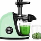 The Jocuu Slow Maticating Juicer is a kitchen tool that slowly squeezes juice from whole fruits and vegetables. It has two speeds to handle both soft and hard produce. This method helps to get more juice and keeps the healthy stuff inside. It doesn’t make a lot of noise when it’s working. If food gets stuck, there’s a reverse button to help. Cleaning is easy because some parts can go in the dishwasher, and its small size saves space.