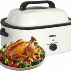 This Kiss the Water Electric Roaster is like a helpful kitchen friend. It can roast big turkeys, and it has a lid. The lid lets you see inside, and it helps keep the food moist. So your turkey or chicken will not be dry. Moreover, this Kiss the Water Electric Roaster is easy to use.