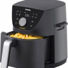 This Laundeet 4.5QT black air fryer uses 1200 watt of power and has a glass pot so you can see your food cooking. It has a nonstick basket that’s easy to clean in the dishwasher and is made with non-toxic materials. You can set a digital timer and it will automatically turn off when done. It’s good for making things like fries, fish, and cake, offering multiple ways to cook. Keep in mind it will take up some space on your counter. Reviews don’t mention any big problems, but the warranty and service might not be great, the instructions could be in other languages, and it might not meet all standard requirements or have advanced features. Read more…