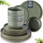 The LERATIO Ceramic Dinnerware Set for 8 is a 24-piece stoneware set with a reactive blue glaze. Many customers were happy with their purchase, noting that the dishes arrived in perfect condition, looked nice, and had a beautiful color that was very close to what they expected. They also appreciated the lipped edges on the plates and found the set to be of excellent quality, functional, durable, and easy to clean because nothing sticks to them. The dishes are also microwave, oven, and dishwasher safe. However, some customers reported that the set seemed a little fragile, with some pieces chipping easily or arriving chipped, and that replacements were difficult to get. Read more…