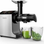 This Omega Intellidial Juicer seems like a helpful kitchen tool. It’s a slow masticating juicer. This means it gently presses fruits and veggies. It gets more juice and keeps more good stuff. The juicer has a big 64-ounce hopper. So you can put in a lot at once. It also comes with four small juice glasses.