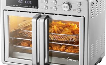 This Panasonic microwave oven measures 21 7/8 L by 19 7/16 W by 12 inches and weighs 29.8 lbs. It looks beautiful in black finish. You can find a small indentation at upper left corner that allow door to open smoothly. Since it is a 1250 watt high power oven so it is great for cooking anything quickly in the 1.6 Cu. Ft. interior. Read more…
