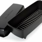 This Staub cast iron chicken roaster, made in France, has a vertical design with an enameled coating. It’s meant to cook chicken evenly, giving it crispy skin and juicy meat, while collecting the drippings. It’s easy to clean and doesn’t need seasoning, plus it’s oven-safe up to 500F. However, it can be expensive and tall, possibly not fitting in all ovens. The matte black color might be harder to clean, and the base could be a bit narrow. Some users have noted that the top browns faster than the bottom, turning the chicken can be tricky, and there isn’t much space for vegetables. Also, the center part might be short, and some people have seen uneven browning, leading some to think it’s not worth the high price. Read more…
