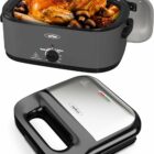 The Sunvivi 24 Quart Roaster Oven is a large electric cooker that can roast big turkeys and also works as a slow cooker. It even has two small pots for keeping buffet food warm. The glass lid lets you see the food while it cooks. It often costs less than a regular oven and can also defrost food. The parts are easy to clean. However, because it’s big, it needs more space to store. Some people say it gets very hot, so you need to watch it while cooking, and there are reports of uneven heating, paint peeling, shipping problems, broken lids, and the inside changing color after washing. Some users felt it was cheaply made, and it cannot go in the dishwasher. The power cord is also short. Read more…