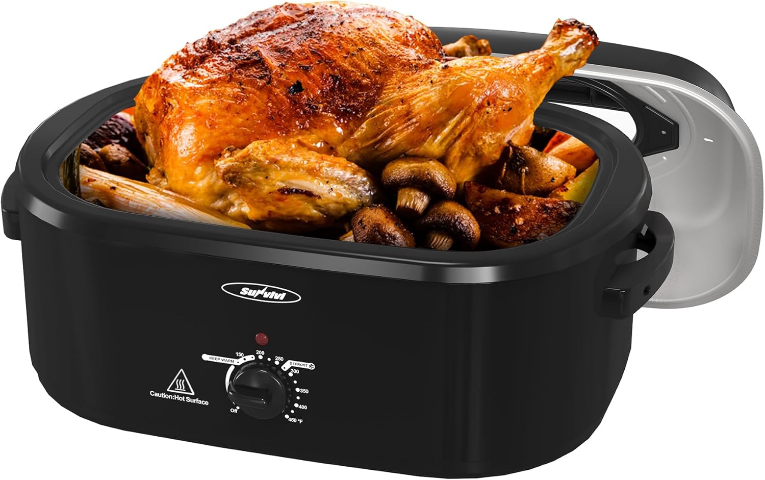 This Sunvivi Electric Roaster/Slow Cooker is quite useful. It works as a roaster and a slow cooker. Moreover, it has a big 26-quart size. This means you can cook a large turkey. Think of holiday meals made easy. Also, the glass lid lets you watch your food. You do not have to open it. Therefore, the heat stays inside.