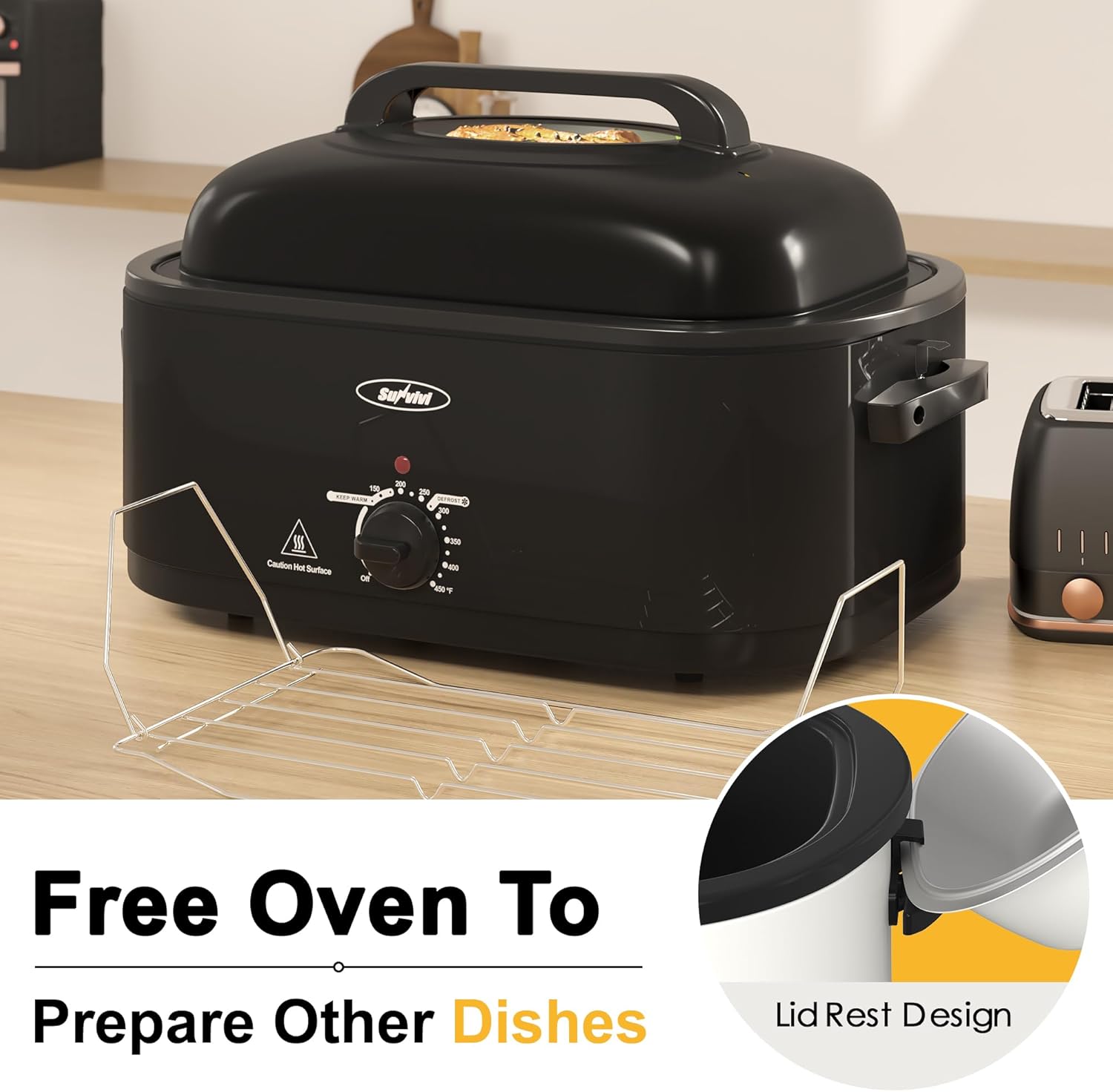 Image of Sunvivi Roaster Oven with Self-Basting Lid, Electric 8-Quart Turkey Roaster Oven with Removable Pan and Rack, Stainless Steel, Black
