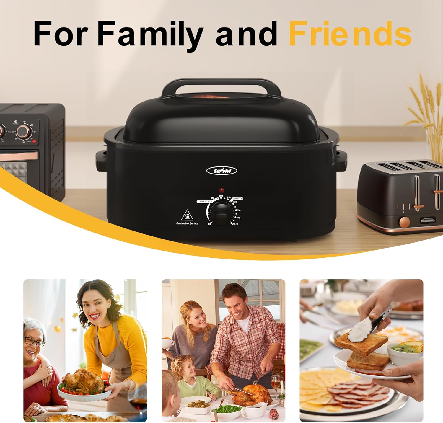 Sunvivi 24 Quart Electric Roaster with Removable Pan, 28 LB Electric Turkey Roaster Oven with Visible & Self-Basting Lid,Large Roaster with Removable Pot and Cool-Touch Handles
