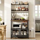 Furthermore, this kitchen rack has a special feature. It includes a power outlet! This is super handy. You can plug in your coffee maker easily. Or your toaster. No need to search for wall sockets. Plus, there is an on-off switch for safety. This SUPERJARE Coffee Bar with Outlet makes kitchen work simpler. It is like having an extra helper. And it keeps everything organized. So your kitchen feels less crowded.