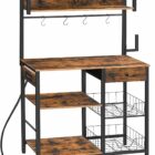 This SUPERJARE White Baker’s Rack with Power also works well as a coffee bar. Imagine having your coffee maker and mugs all in one spot. The wire basket adds a nice touch for storing things like coffee pods or small snacks. The open shelves make it easy to grab what you need quickly. While it’s not a huge piece of furniture, it provides a good amount of storage without taking up too much floor space. Many find it quite sturdy, so you can trust it to hold your kitchen items safely.