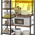 Overall, this baker’s rack is a good proposition for anyone needing more kitchen storage and a charging spot. It’s not just for baking; it can hold many things. The design is simple yet functional. It offers a blend of storage and technology. While it doesn’t have a drawer, the shelves and hooks provide ample space. It’s a solid piece of kitchen furniture. It aids in the smooth production of meals. This baker’s rack brings a touch of organization to your kitchen arts.