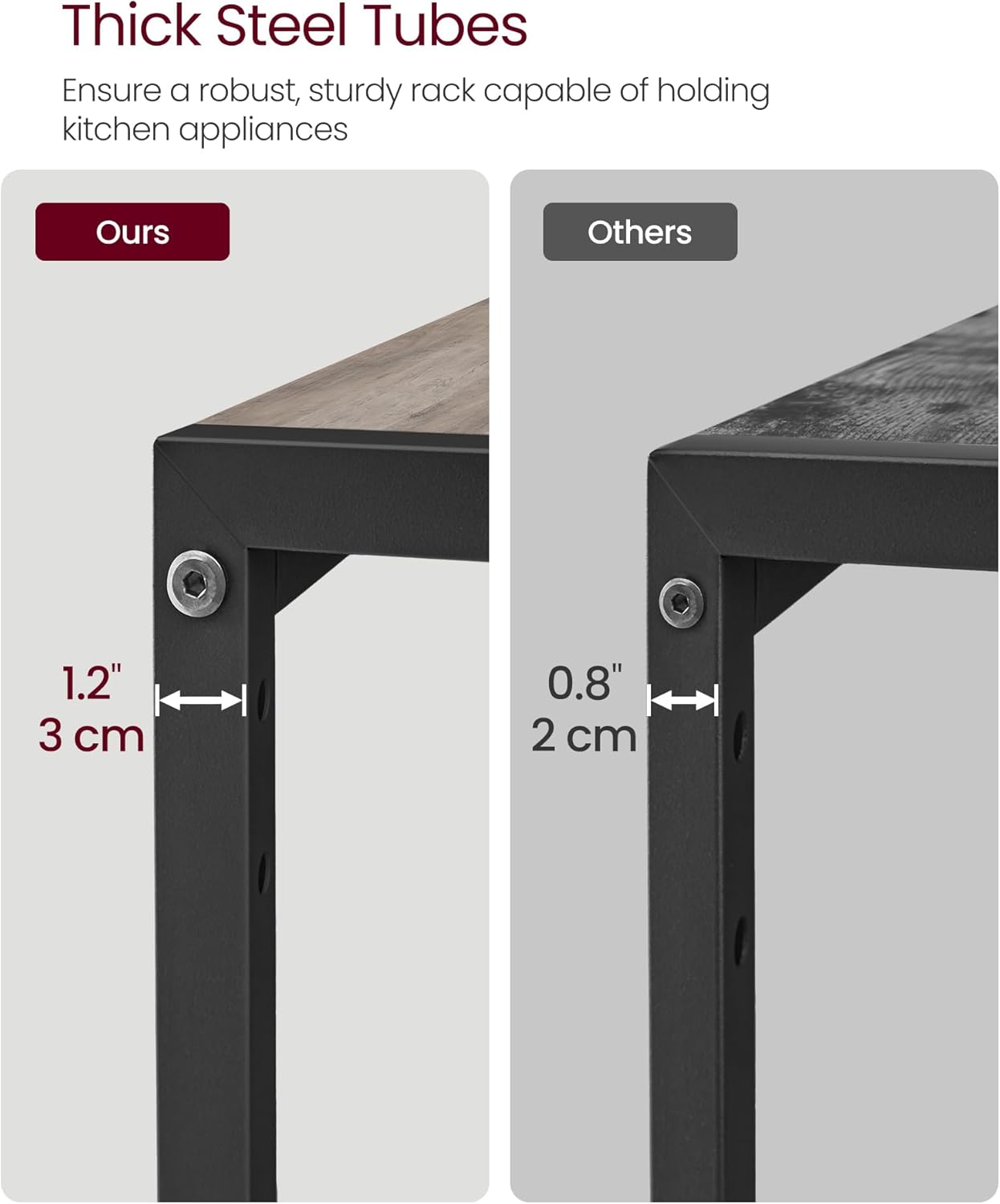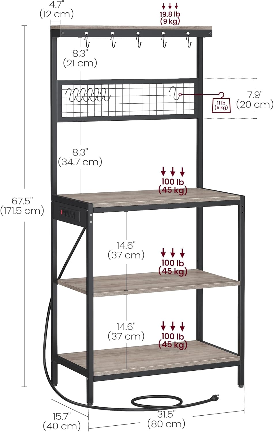 This baker’s rack has a charging station. It lets you charge your phone or small appliances. This is super convenient, and it saves you time. The heather greige and ink black colors look nice together. It has a modern touch. Imagine having your mixer nearby. You can easily access your favorite recipe. This VASAGLE Charging Baker’s Rack is useful for beginners and experienced cooks alike. It makes kitchen tasks simpler and more efficient.