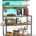 This VASAGLE baker’s rack in golden oak and cloud white gives you lots of space to store kitchen things. It has shelves for spices, pots, and pans, plus a wire basket and 6 hooks. It’s made of particleboard with a steel frame, so it should be stable, and it has feet you can adjust. Remember not to put food directly on the wire basket and to check if your appliances will fit. Putting it together might take a little while, and some people think it’s not super easy to assemble. You should wipe it clean with a dry cloth and keep it away from wet spots. Read more…